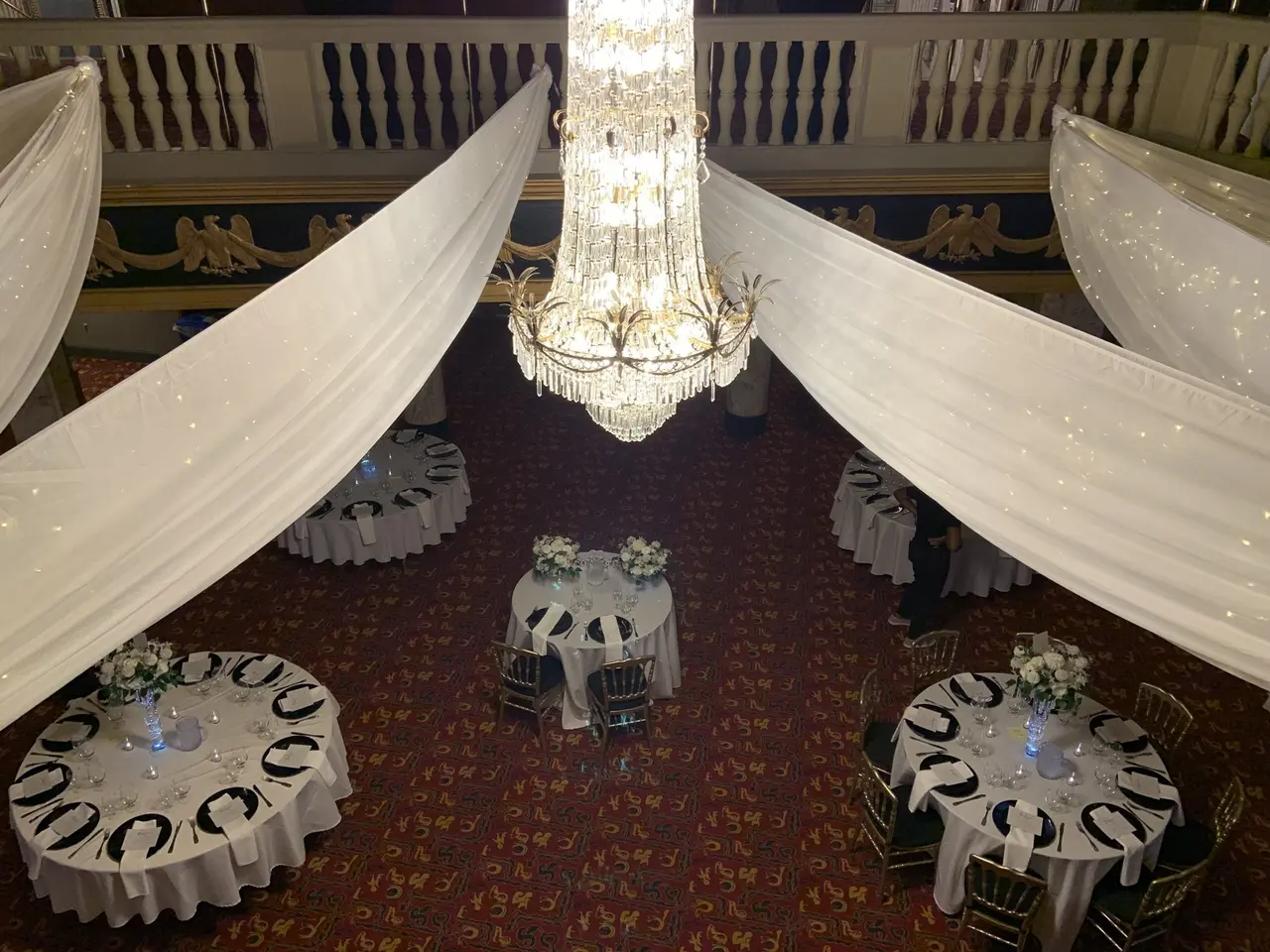 • Marble staircase, gold-leaf ceilings, chandeliers