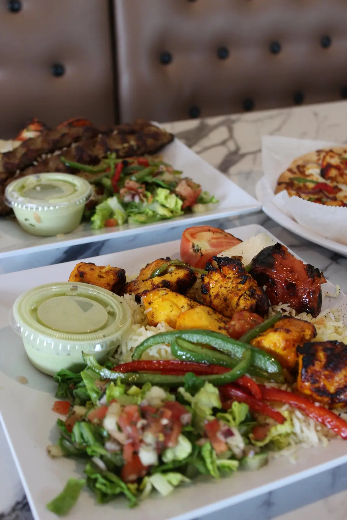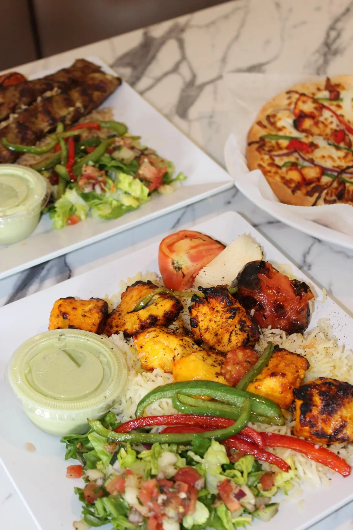 - Signature kabobs (chicken, beef, lamb, kofta) + gyros